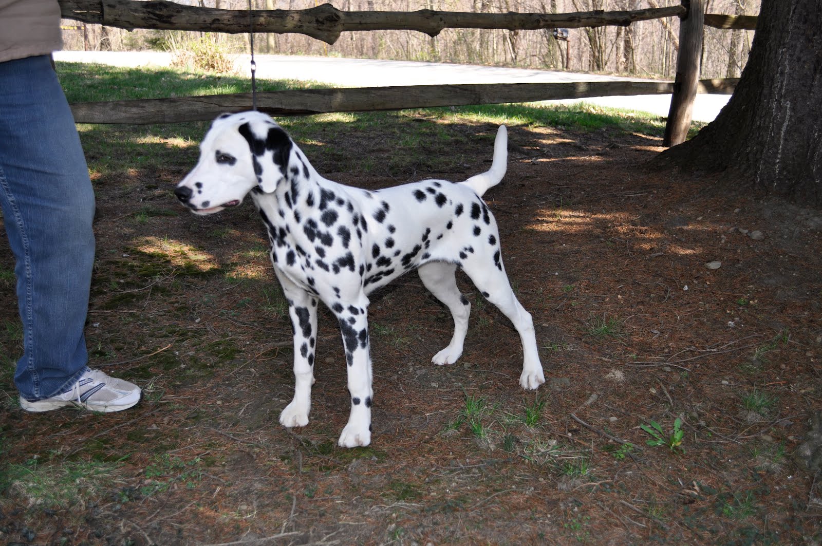 Though this is not a dog that was bred here, I felt very much a part of the litter that she came from. She and her littermates were born on my birthday and were all named after members of my family. This is Emily, she was named for my granddaughter. What a thrill it was today to be ringside as she and her breeder, owner handler, Barb competed for the very first time. What a bigger thrill when she won the major and then went on to win Best of Opposite over specials. Emily is also from the first full litter of low uric acid Dalmatians to be accepted into AKC. Congratulations to Barb for a job well done!